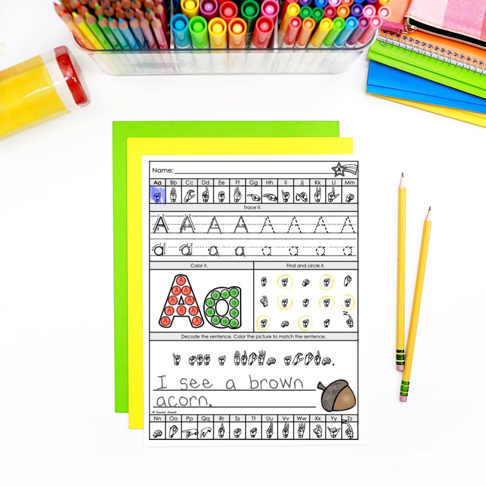 ASL Alphabet, Numbers, Colors, and Shapes Practice Bundle - Teacher Jeanell